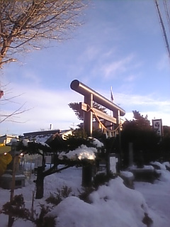 喪中の身とはいえ、神社仏閣好きな私としては、 やっぱ、行かなくちゃ気持ちが治まらない(笑)。 で、早朝に行ってきました。 一応、鳥居はくぐらず(おめぇ、入るなよ、と言われたら困るので...笑)、 横道から進入。 まっすぐ、お札を買いに行きました。 氏神様にまた護っていただくなくては、いけないからな、うん。 神社の方に喪中の旨を伝え、お賽銭を代わりにお願いしたところ、 「なんもさ、49日過ぎていたら、いいんだ、いいんだ」←笑。 なんと、懐の深い日本の神々よ。 さっすがぁ~♪。あたしと相性ぴったり(笑)。←気のせいかも。 でも、お願いした方がご利益あるかなぁ、なんて思って、 そのまま半紙に包んでおいたお賽銭をお渡ししました。 その時に、 「あっ!まぶしいーーっ。すごい初日の出だぁぁ。」と神社の方。 ほんと、彼の顔に突然、直撃してましたよ、朝の光が(笑)。 ちょっと広めの額が、急にぴかぴかに(笑)。 内心、「こりゃ、ご利益あるかも..ふふふ」なんて、 不謹慎な事を考えてしまった、私ですぅぅ。 ←帰り道に写した神社。 空の青さを見てください。 すごいでしょう~。 鳥居も輝いていましたよ。 帰宅後、お札をおさめて、 お雑煮をお供えしました。 もち、仏壇にもね。 今年一年、よろしくお願い致します。 なむなむ...。 *しかし、道路はすごい事になってました。 ぐぅたらな私は、当然、車で行ったわけですが、 ざくざく、埋まりそうになりました。 今日はもうおでかけせずに、酒盛りしよう...(笑)。*