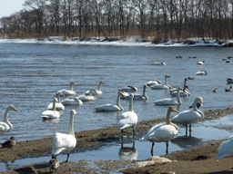 何やってきたんだろ、あたし的な思いもちらほらありますが、 取りあえずは、元気に誕生日を迎えられて良かったなぁ、と。 大台記念って事で、激務の最中、 EOS君がお祝いをしてくれました。 千歳から15分位のところに、ウトナイ湖って湖があります。 ここはラムサール条約登録湿地でもあり、 バードサンクチュアリとなっています。 すげー(笑)。 季節が季節ゆえ、雪の中の湖はどうなっちゃってんだろ?みたいな、 ちょっと不安がありましたが、とても楽しいハイキングでした。 ←ネイチャーセンターの窓から撮影。 アカゲラ、だったと思う(笑)。 センターのレンジャーさんがとても気さくで、 楽しい話をたくさんしてくれました。 湖の様子、鳥の様子、めちゃ楽しかった!。 ←まだ半分以上、氷に覆われている湖。 湖の岸辺も、まだまだ雪がありましたが、 私達は、大台記念、大台記念と、 呪文を唱えるように呟きながら、 頑張って歩きました(笑)。 ずぼずぼ、雪に埋まりながら...(笑)。 ←ネイチャーセンターから鳥獣保護センターへ移動。 近くの道の駅のところで、餌付けが行われていました。 これは、マガン(だと思う)。 まるっきりデコイでしょ?。 すっごい可愛らしかったです。 ポケットに入れて帰りたかった(笑)。 でも、足が見えてる白鳥って...(笑)。 やはり白鳥は水の上で、 静かに漂っていて方が綺麗かも(笑)。 しっかりと二本足で立つ白鳥。 なかなか丈夫そうな、 違う種類の鳥に見えました。 *今回は誕生日って事で、雪のある季節に遊びに行きましたが、 緑満載の季節にまた行ってみたいなぁ、と思いました。 しかし...大台かぁ...←遠い目。 あははははは。* |