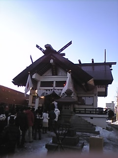 抜けるような青空。 今年はあまり雪のないお正月です。 札幌市内には北海道神宮という大きな神社があります。 でも我が家は毎年、地域の氏神様にお参りします。 小さな神社ですが、明治からあるとても古い神社です。 北海道神宮同様に、少彦名神(すくなひこな)が御祭されています。 身体は小さいけれども知恵があり、医療、特に薬の神様とも言われています。 家族の健康を祈るには、ぴったりの神社だなぁ。 ←お参りの順番を待っている時に、ぱちり。 あまり並んでいなかったので、 ちょっと焦っちゃいました。←ちょっと曲がったし。 この後、お賽銭をあげて、がらがら(笑)。 みんな健康でありますように。 病があっても回復しますように...。 ←あっ!!!! お札を買ってるうちにすごい行列に!!!。 あたしん時は、三人くらいだったのに...。 なんとなく、あぁぁ、らっき~♪と思いました(笑)。 ね?すごい青空でしょ? 雪も少ないし...。 今年一年、私達をお守りくださいね。 *しかし...境内に焼き芋屋があったのが、気になる...(笑)。 買おうかなぁ、と一瞬思った自分が可愛いかったです。わはは。* |