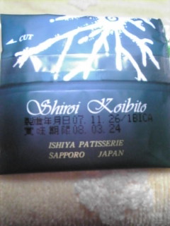 やっと復活、販売開始となりました。 時期早々の意見もありますが、 私個人としては「いいんでないかい」と思っています。 不具合が生じた、直した、ばんざい~♪って事で、 「反省が足りない」とは思ってはいません。 石屋製菓の元社長さんは、北海道経済に大きな影響を与えていた方。 ただでさえ、お財布の寒い北海道ですから、 販売停止は北海道にとって、とても痛い話...。 社長交代が早かった(早いと思った)のには、 多分、そういう事情もあったのではないかな、と考えています。 新社長さんは、元北洋銀行の常務取締役だったと聞きます。 白い恋人を守る為に、北海道を守る為に行われた交代劇では?。 ばつぐんの知名度を誇る、白い恋人。 サッポロビールの本社が札幌になくなってしまった今、 とても大切な存在です。 もしも道外大手メーカーに吸収されてしまったら...。 北海道の主要経済人が動くのも、当然至極の事かもしれないな。 販売開始直後は、売り切れ店続出だったとか..。 これはお土産でいただいたものです(笑)。 変わらぬデザインに安心しました。 でも、後方で控えてる目線が怖い...(笑)。 ←shiroi koibito の下の文字が見えますか?。 製造年月日、賞味期限が明記されています。 以前は....どうだっけ(笑)。 まっ、とにかく食べられるようになったわけで(笑)。 よかった、よかった~♪。 *雪まつりに間に合うかな、と思っていましたが、 Xmasに間に合いましたね。 これまた、よかった、よかったぁ~♪。*