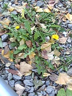 確かに気温は確実に低くなってきているし、 雪虫も飛んだし...(笑)。 今日、外出の際、交差点で信号待ちをしていました。 ふと、近くの駐車場に目をやると...。 あれ?もしかして、たんぽぽ???。 この季節に「たんぽぽ」なんて...。 今年は比較的暖かい気温が続いていたため、 また咲いちゃったのかもしれないね...。 ←雪が降るっていうのに、 咲いているでしょう?。 小さいけれども、頑張ってるよなぁ...。 雪が降ったら、どうなっちゃうんだろう...。 大地にしっかり根を張って、 寒さに負けずに咲いています。 2007年度道産子大賞をあげたいな。 *昼間より、気温がかなり下がってきました。 やっぱり明日降るのかなぁ...。* お土産物屋さんへ行った話しを、先日書きましたが、