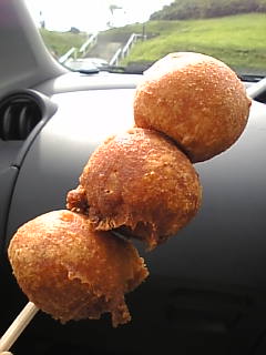 まっ、細かい事は気にせず、アップする事にしました。あはは。 (前回はどこまでだったかな...。) えっと、支笏湖をめぐり登別温泉へ向かい、 小学生以来の地獄谷を見ました。 相変わらずの「硫黄」の匂い...。 あぁぁ、ゆで玉子が集団でやってくるぅ~、って感じでした。 昼と夜、二回見に行ったわけですが、 EOS君は激写モードで綺麗な写真を撮っていました。 がっ!あたしは、素人カメラマンゆえ、 夜の撮影に苦しんでおりました(笑)。 でも...夜の地獄谷ってライトアップされていて、 とても綺麗な、静かな装いでした。 写真がないのが残念...。 で、気を取り直して、翌日、室蘭:地球岬へ。 これが地球岬。 この日は曇天で波が少しありましたね。 遠い水平線を見ながら、 久しぶりの潮風を堪能しました。 るみちゃん、頑張りました。 小さいながらも12倍ズームのすご技(笑)。 景色を堪能していたところ、 小さな鳥を発見!。 飛ばないで、行かないでと祈りながら、 シャッターを切りました。 ←車中のおやつ(笑)。 岬の売店で購入。 EOS君、ちょっと呆れ顔(笑)。 「朝、たっぷり食べたでしょ...」 それとこれとは、別だよね~♪。 これは、じゃがいもを揚げたものです。 たっぷり3個(笑)。 じゃがいもを(あたしだけ)食べながら、 一路、洞爺湖方面へ。 ひたすら真っ直ぐな橋。 風景をさえぎる物がなく、 とても気持ちのいいドライブでした。 モクモク 煙をあげる昭和新山。 又、いつ大爆発を起こしても不思議じゃない、 そんな感じがしました。 この写真も山のずっ~と麓から撮りましたが、 「山は活きている」事を実感しました。 ニセコの神仙沼まで。 もっと天気がよかったら、 神秘的な沼になったかも...。 水面が鏡のようでしょ?。 ちなみにこの沼まで、結構歩きました。 山歩きが得意なEOS君に遅れないように、 ひたすら、もくもくと、必死に歩きました(笑)。 でも、なんとか頑張れたのは...やっぱ、おやつのおかげかも(笑)。 おやつなくしての遠足は有り得ないっていうのが、あたしの結論(笑)。あはっ!。 (追記) *EOS君から、地獄谷の写真をいただきました。 「鬼火の路」の写真です。 さすがっ! 実際の鬼火の路も素晴らしかったけど、 写真もとても綺麗に撮れてます。 静かな秋の夜を思い出しました...。 |
