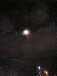 せっかく楽しみにしていたのにね。 まんまるの月を眺めながら、鼻歌まじに帰宅希望だったのに。 残念、残念。 今夜の札幌は、雲の流れがとても早く、 切れ間からですが、ちらちらと、お月様が見え隠れする夜になりました。 眩しいくらいにまんまる(笑)。 と、思ったら、すぐに雲(笑)。 まぁ、全然見れないっていうわけじゃなかったから、 良し、としましょう。 うさぎも雨をよけながら、餅つきしてたかもしれない、札幌でした。 ←肌寒い夜です。 もやもやしたのが雲。 ね?眩しいくらいに光ってるでしょ?(一応)。 懲りずに、携帯で激写しました(笑)。 もう、半袖で、ふらふらできない季節になりました。 すっごい寒かったです...。←年寄りだから。 *明日晴れたらいいなぁ~。もっと綺麗なお月様が見える!*