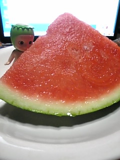 今夜の札幌は、それほど暑くはなく、 スイカ日和ではないのですが、風呂上りに食しました。 真っ赤なスイカなんですが、ん???。 なんか、種が少ないような気がしました。 普段から、あまり果物系は食べない私ゆえ、 あてにはならないのですが...。 スイカってもっと種がありませんでしたか? 知らない間に品種改良されちゃっていたのかも...。 ←問題のスイカです(笑)。 偶然に種のないところを切ったのかもしれませんが、 それにしても、ない(笑)。 面倒臭いなぁ、と思っていた種ですが、 なければ無いで、ちょっと気になる...。 そろそろ、甘いとうきびの季節になるなぁ。 既にお店に並んではいますが、 もっと美味しくなるのを ひたすら待っています(笑)。