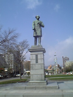 あれ?どっかで見たことのある制服じゃんか。 うわぁぁぁ、懐かしいなぁ...。 あの制服を着て、3年間過ごしたんだよなぁ。 笑いころげて、きゃっきゃっ歩いたっけなぁ...。 がっ...ちょっとまって...へ?...。 なんで、青いコンタクトしてるのさ。←完全道産子になってます。 しかも、太い付けまつ毛つけてるし...。 あぁぁぁ、年月はここまで進んでしまったのか...。 地下鉄の窓の向こうを眺めながら、 しばし自分の高校時代を振り返ってみました...。 1年生の頃...ほとんど軍隊でした(笑)。 体育の時間などは、整列が曲がっただけで、 出席簿で、がつんっ!。 よろけちゃったら、また、がつんっ!。ひえぇぇぇ。 なんせ、竹刀持参だし(笑)。怖いこわい...。 私も一度洗礼を受けましたなぁ...←回想中。 真横に一列に並び、前進。 ゴールしたら振り返り、次の列が来るの待ってます。 いよいよ私達の列の番。 あぁぁ、あたしって奴は、こういう緊張の時に笑っちゃうんだよね。 友人のにやにやした顔を見ないように、 下を向いて前進したのが、悪かった....。 ゴールと同時に、がつんっ!。 「下にお金でも落ちてたのかーっ。ばかもん。」 友人の前でもあり、恥ずかしさ一杯になった純真な私...(笑)。 青春だったわぁ...(笑)。 あれから、うん十年。 どうやって過ごしたら、付けまつげの女子高校生になれるんだろうなぁ。 あの厳しさはどこへ行っちゃったんだろうなぁ...。 下駄箱に辞書を置いていき、職員室に呼び出された私は、 多分、可愛い女子高校生だったのだろう。 (当時の流行としては、当然、友人が廊下で待機)。 今こうして、付けまつ毛をつけている子達も、 いつか私のように振り返る事があるのだろうか...。 きっとあるんだろうなぁ...。 そして、自分の歩いてきた道を、又新たな視点で見つめるに違いない...。 PR 北海道といえば、クラーク博士の名前がすぐに浮かんでくる事と思います。 でも小学生の頃、学校で教わった「開拓史有名人」は、 黒田清隆は薩摩藩の武士。 黒田はアメリカ訪問のさい、ケプロンに北海道開拓を懇願したと言われています。 ケプロンは道路鉄道建設、工業、農業など多岐にわたり、開拓指導にあたりました。 大通公園西10丁目には、この二人の立像があります。 自分達が導いた人々が、開拓の魂を忘れずに、