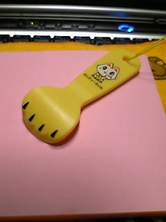 今日はちょっとお気に入りのグッズをご紹介いたしましょう。 数年前にも一本いただいているのですが、 今年に入って又もや、一本いただきました。 前回のは「お好み焼きへら風プラスチックへら」だったのですが、 今回のは、かなり凝っている...(笑)。 もう~、これがないと、アレは始められないっ!。 ←インスタントくじを削る、 削り棒です。(本名はなんて言うんだろうなぁ?)。 猫ちゃんの手で、銀部分を削っていきます。 しゅっしゅっしゅっ! これで私は10円玉で削るのをやめました(笑)。わはははは。 *私は割りと小金運(こがねうん)があるらしく、 高確率で半分以上折り返しています。 だから、ジャンボは当たりません....(^○^) ノ 。 来る4月8日は選挙の日。